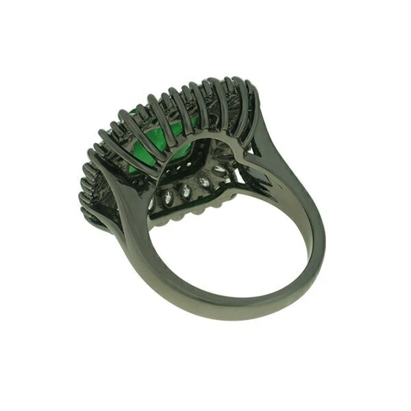 Anel de zircônia quadrada esmeralda fusion no meio com a borda de zircônia cristal.