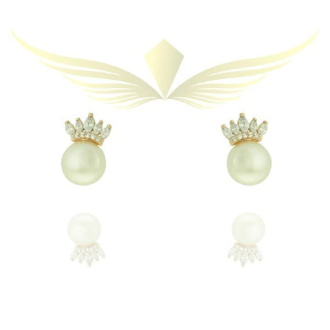 Brinco de pérola de 8 mm com a base em formato de coroa de zircônia cristal.