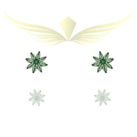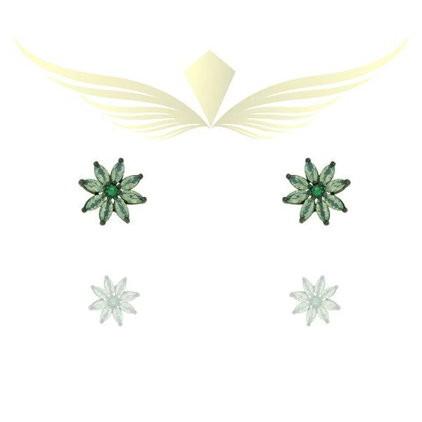 Brinco de zircônia azul claro leitosa em formato de flor com o miolo em zircônia verde.