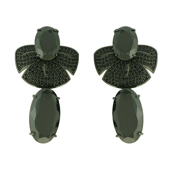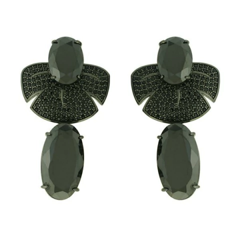 Brinco articulado de zircônia negra oval e micro zircônia negra na base, e um formato oval maior de zircônia negra pendurada.
